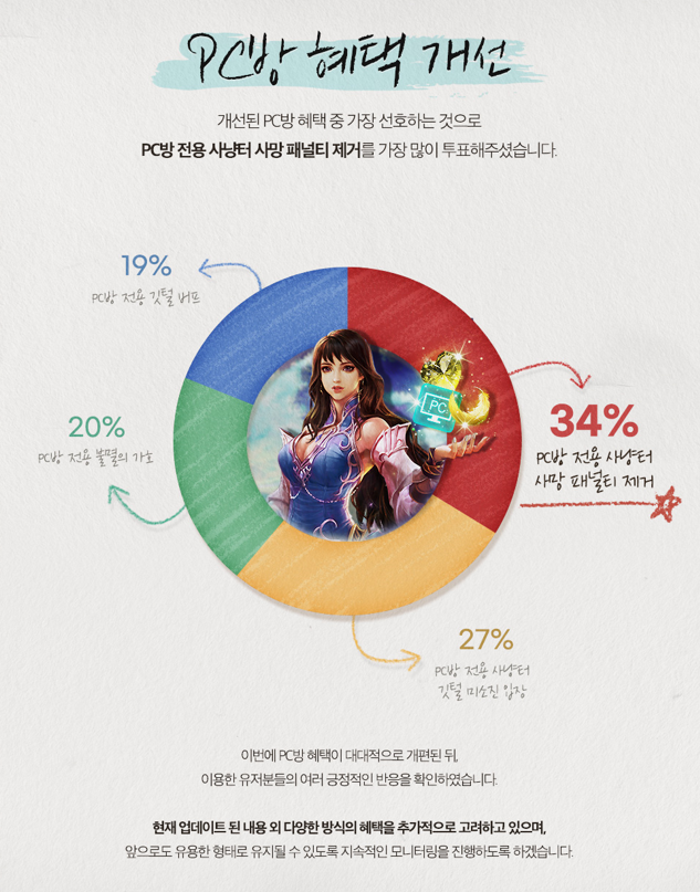 PC방 혜택 개선에서는 PC방 전용 사냥터 패널티 제거가 가장 높게 나왔네요.