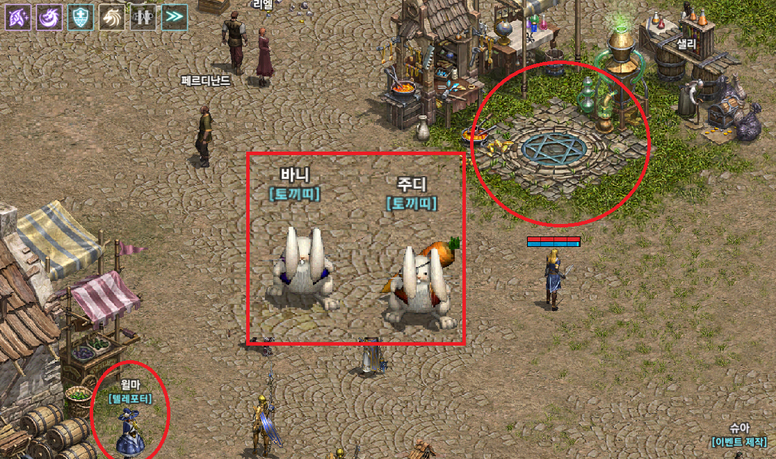 기란 마을 텔레포터 윌마 1시 방향에 바니와 주디가 있습니다. 지난 국왕 이벤트 부터 애매한 자리에 이벤트 npc가 생성되는데요.