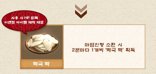 12지신 마법인형을 소환하면 떡국 떡을 2분에 1개씩 획득이 가능합니다.