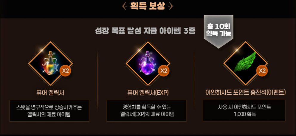 어쨋든 기준을 충족하면 아래와 같은 보상을 총 10회 받게 됩니다.