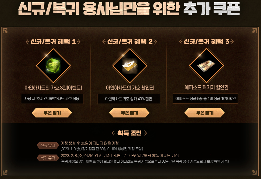 그리고 혜택 4종에는 없지만 신규 및 복귀 유저를 위한 소소한 혜택도 있습니다.