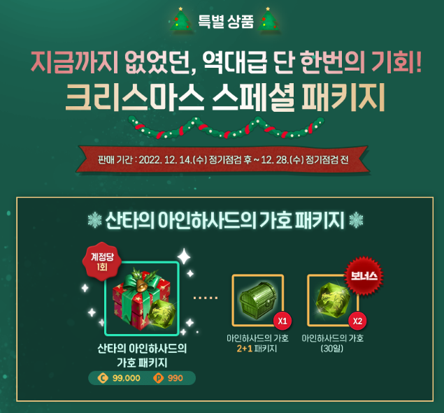 그러나 신규 유저들이나 기존 유저들에게 악세사리 패키지나, 특히 지난 번 크리스마스 가호 패키지는 매우 혜자 패키지였습니다.
