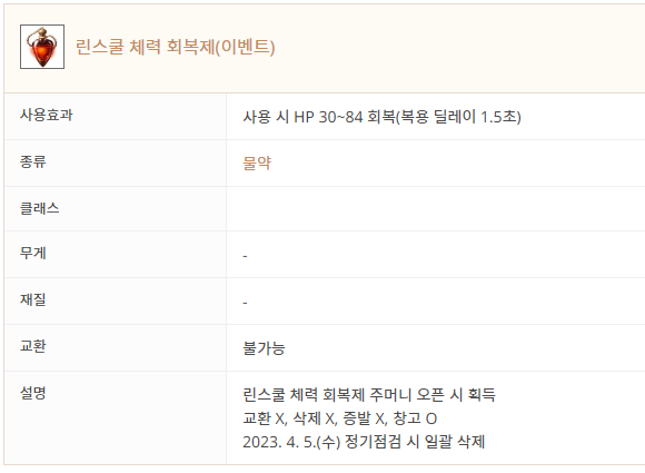 그리고 4월 5일이 지난 후 부터 이벤트 물약도 삭제가 되면서