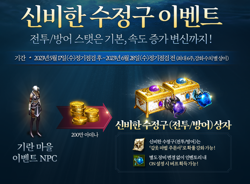 기란마을 이벤트 NPC나 이벤트 알림 창에서 신비한 수정구 상자를 클릭하시면