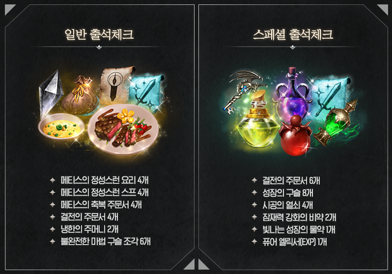 다시 일반출석 체크와 스페셜 출석체크로 구분되는데요. 스페셜은 300만 아데나로 개방해야 합니다.