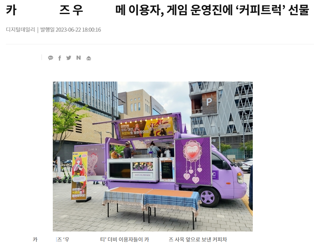 어느 게임사는 유저들에게 커피차를 받았다는 기사를 본다면 분명 기분이 언짢을 것입니다.