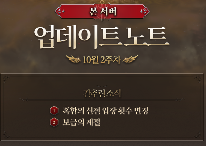 오늘 10월 11일 수요일 정기점검 및 10월 2주차 업데이트가 적용되었습니다.