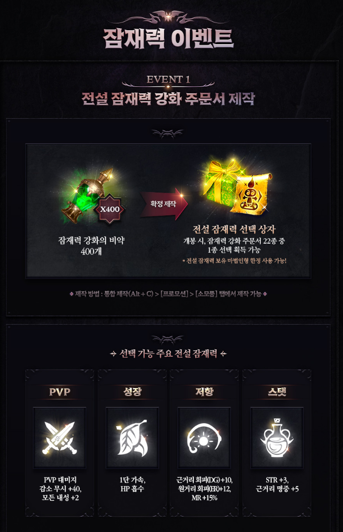 그리고 잠재력 강화 비약 10개 및 50개로 로 잠재력강화주문서 제작이 가능합니다. 다만 확률입니다.
