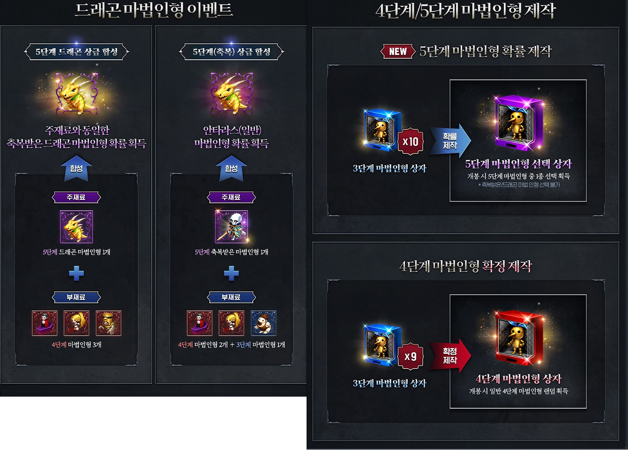 그리고 드래곤 마법인형 4~5단계 합성 및 제작 이벤트가 진행됩니다.