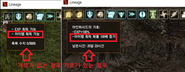 얼마 전 업데이트가 되면서 아인하사드 축복이나 가호 없이도 아이템 획득이 가능해졌다는 공지가 있었습니다.