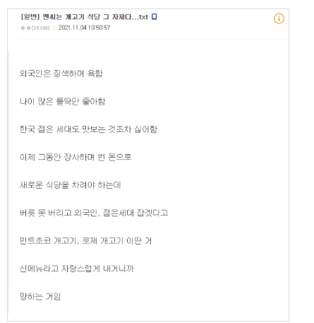 개고기집이라는 비유는 과하게 느껴질 수 있지만, 이 사태를 설명하는 데에는 꽤 적절합니다.
