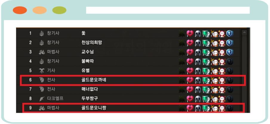 다소 의아한 것은 기존 골드문 혈맹 중 비교적 높은 레벨에 속하는 두 케릭이 이전을 하지 않은 것 입니다.