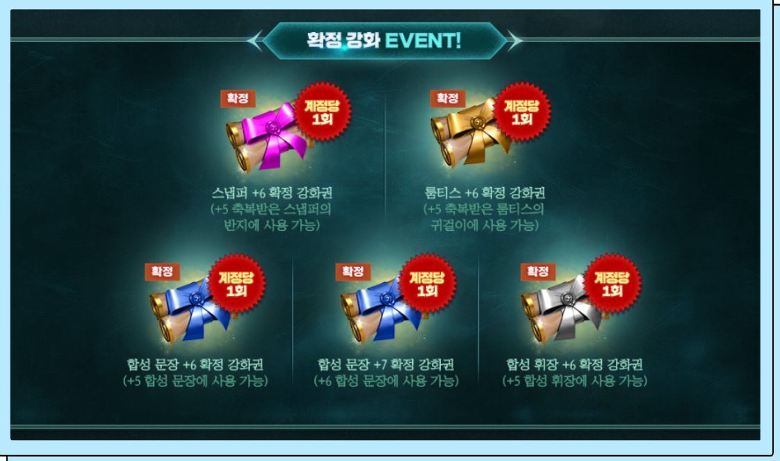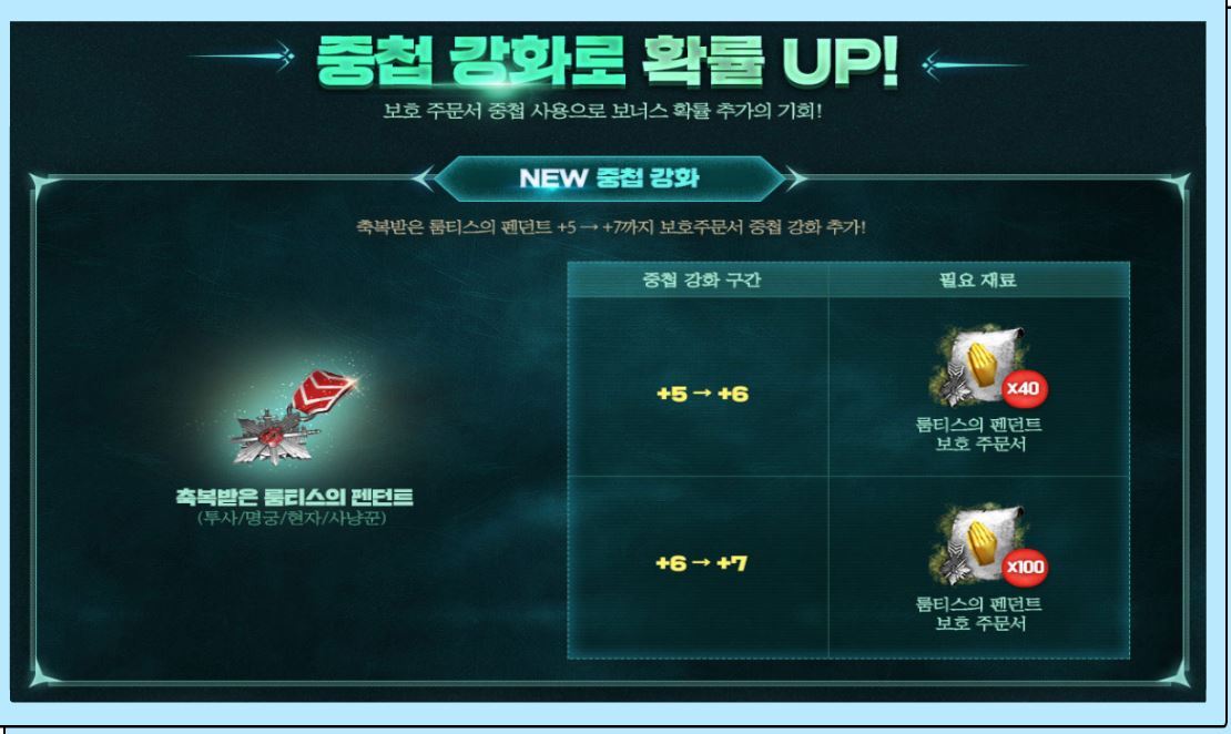 그리고 펜던트 외에도 문휘스룸을 보호주문서를 통해 중첩 강화도 이벤트 기간 동안 가능합니다.