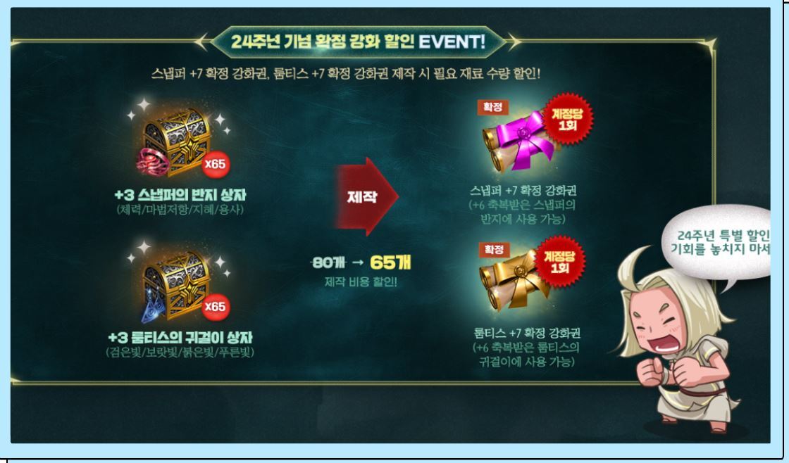 첫번째 살펴볼 이벤트는 24주년 기념 확정 강화 할인 이벤트 입니다.